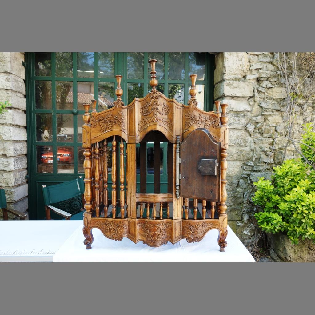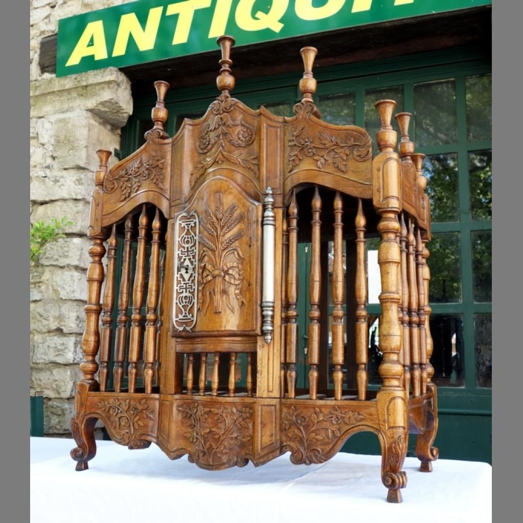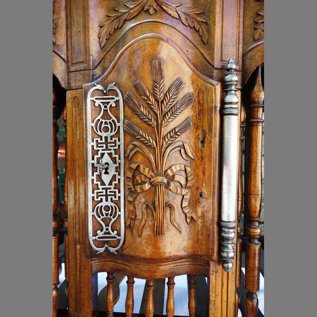 Façade galbée, fuseaux tournés, elle présente des attributs naturels et de l'agriculture.