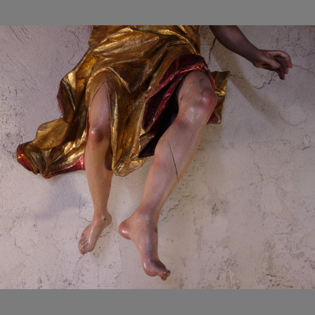 Un grand souci du détail apporté aux mains, aux pieds et aux grandes ailes déployés. Les couleurs dans un très bel état de conservation ont gardé leur éclat.
