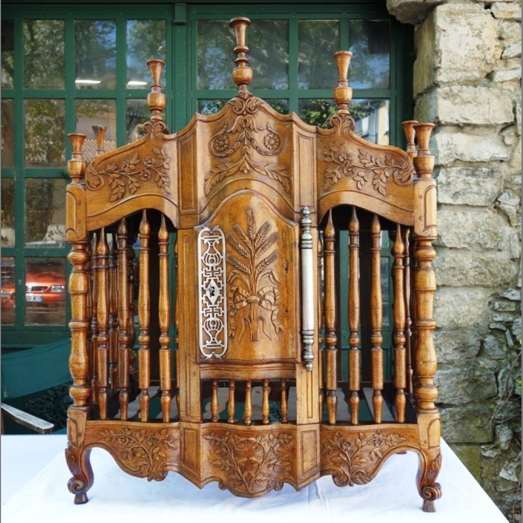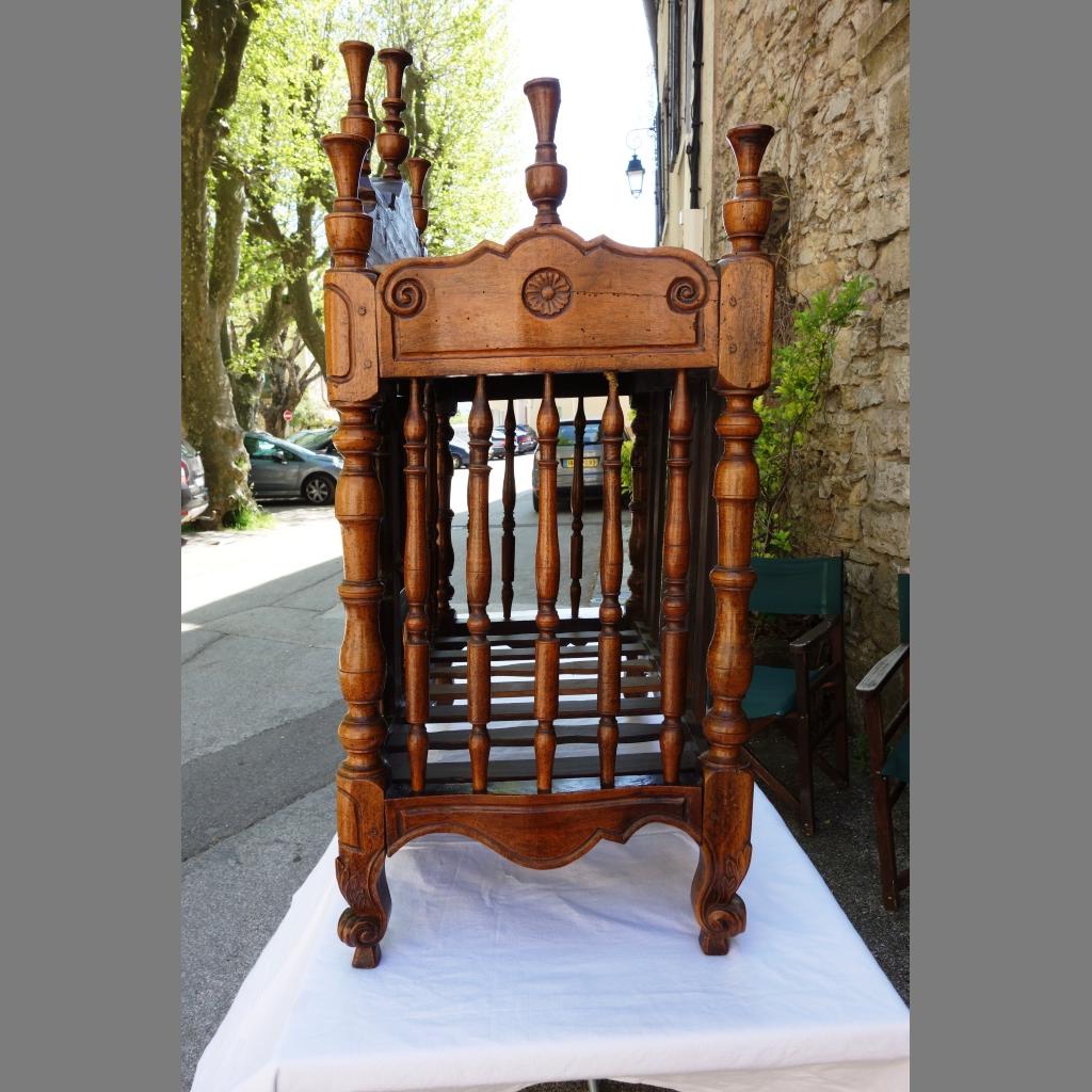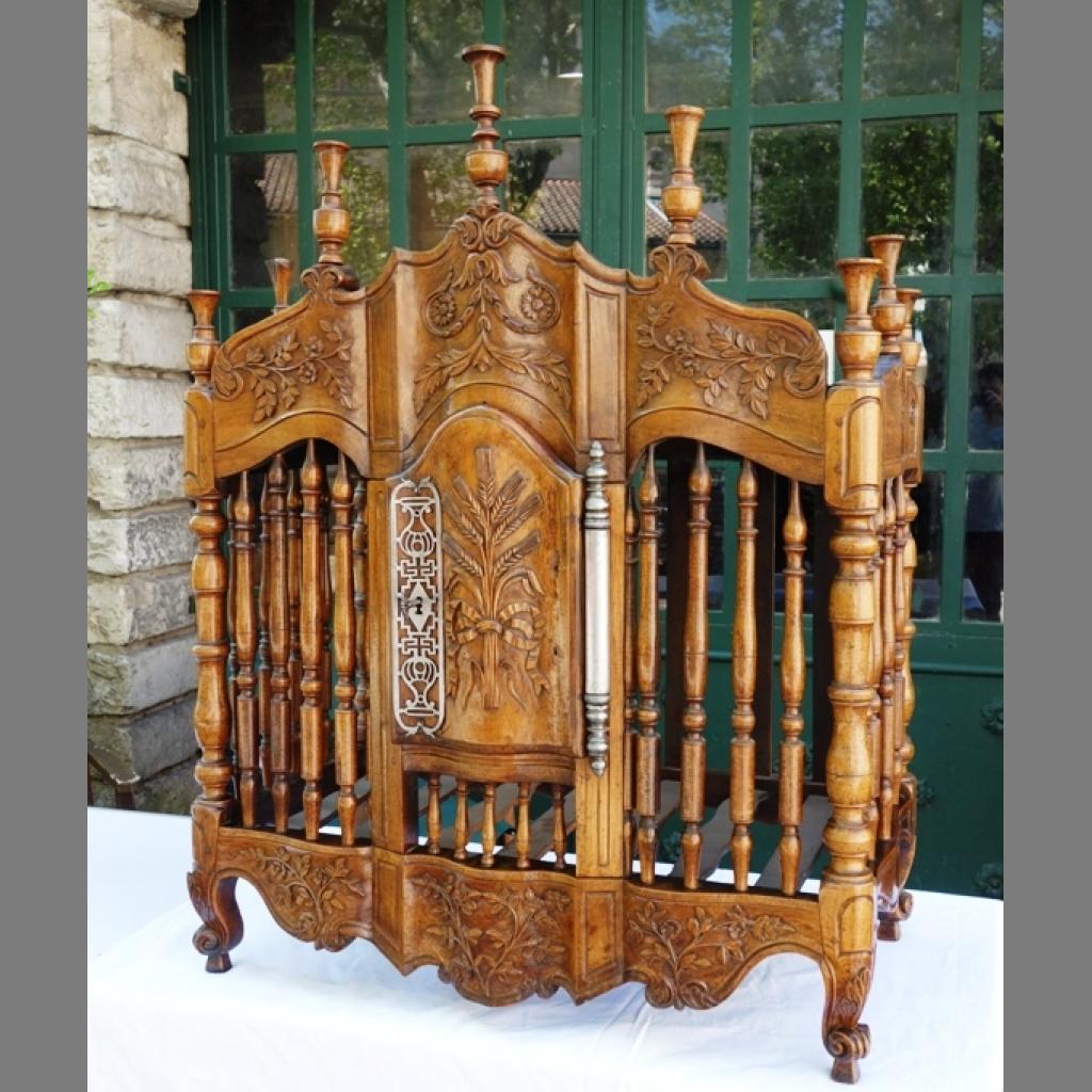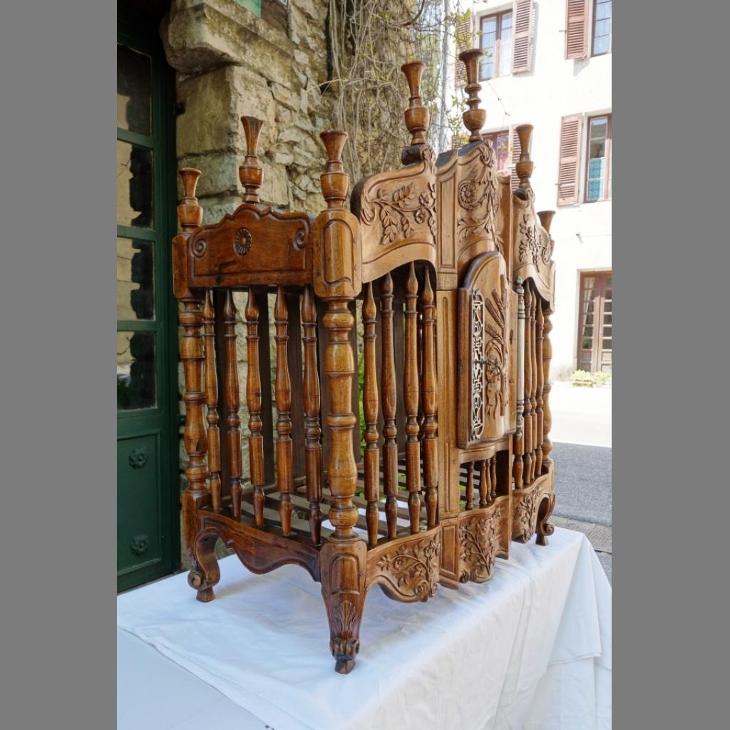 Façade galbée, fuseaux tournés, elle présente des attributs naturels et de l'agriculture.